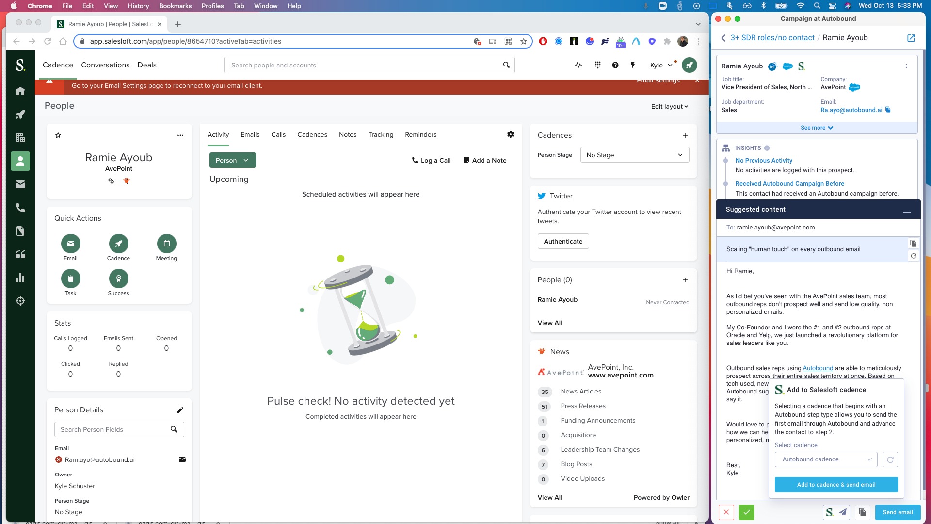 Our engine represents a different, "inside-out" approach to outbound sales. Autobound integrates all the data sellers care about in one place, then suggests the right message to send to the right contact at the right time. Autobound can generate personalized emails more than 6x faster than the average seller.
