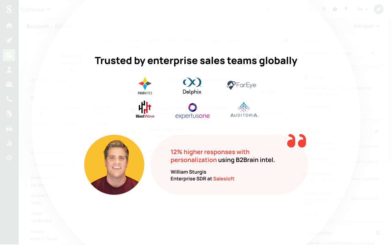 If you wish to get additional insights, talking points and leads for your target accounts, connect the B2Brain extension from https://chrome.b2brain.com/ to your Salesloft.