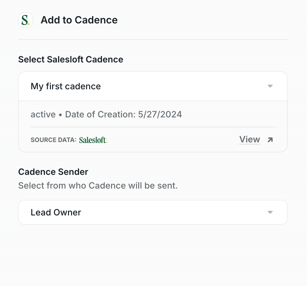 - Select the Sender of the Cadence