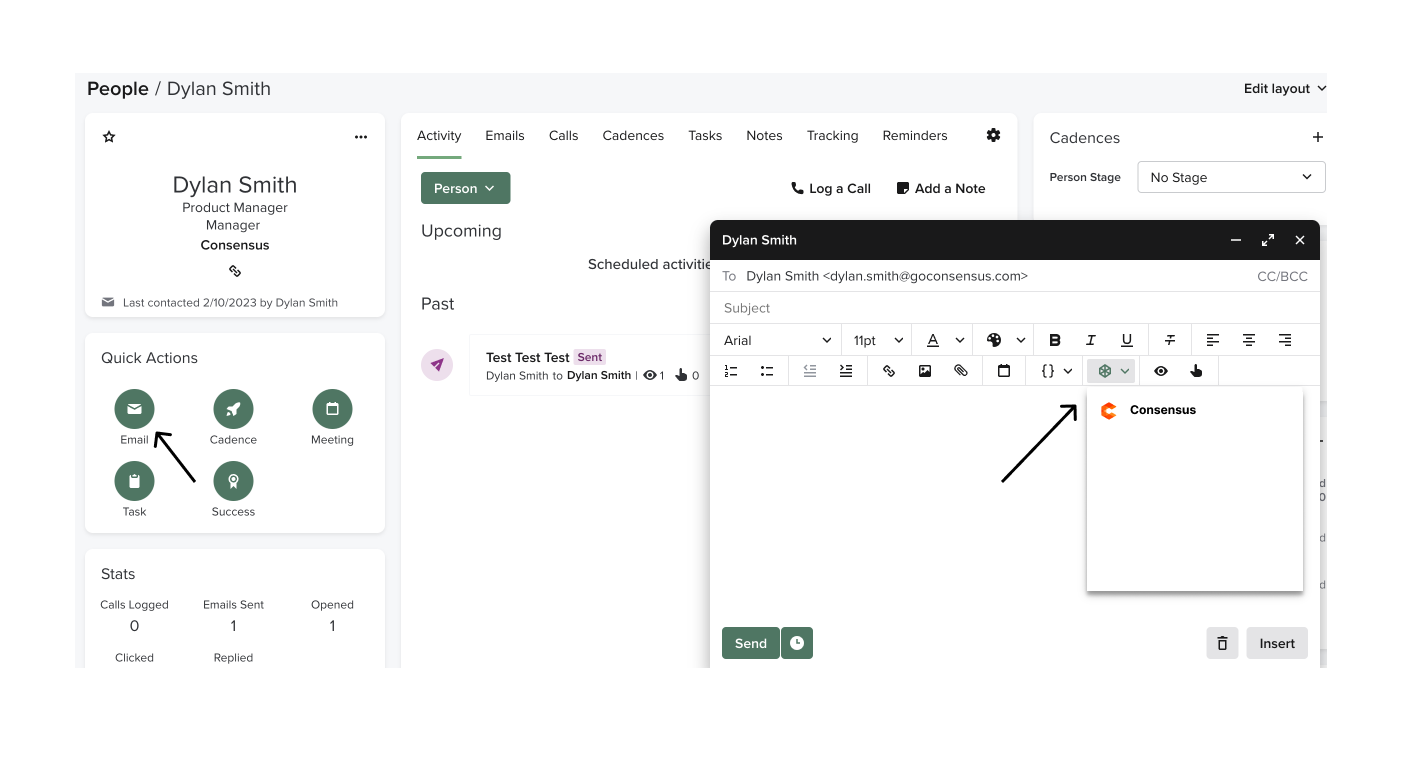 - After your Salesloft Administrator installs the Consensus app, sales teams can access Consensus from the text editor within direct emails, snippets, templates or cadence email steps.Â