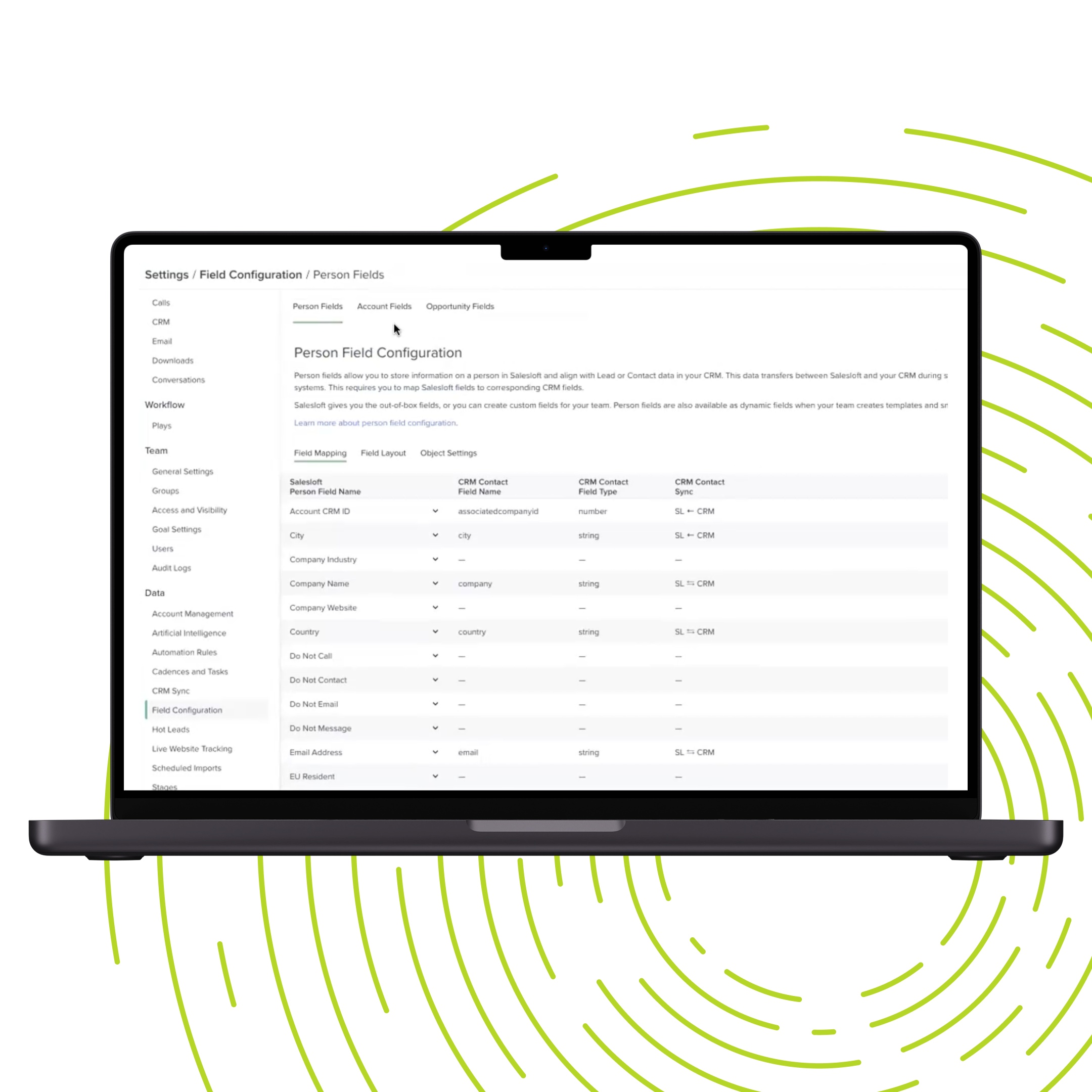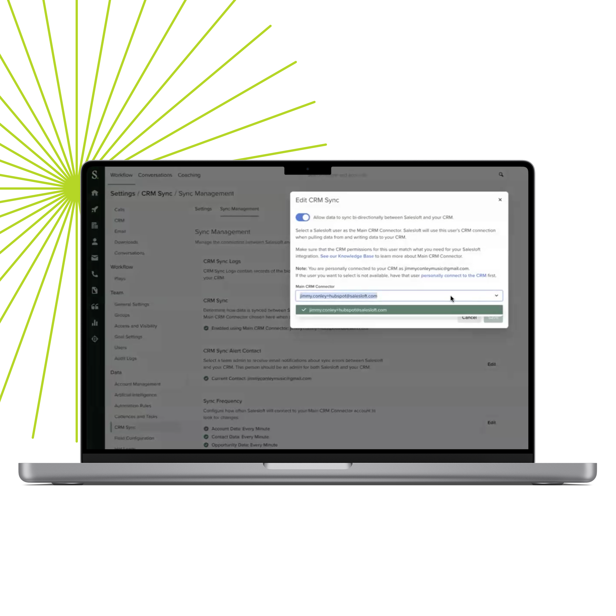 Auto-map standard fields from HubSpot CRM to Salesloft and easily set up your team’s instance in no time. Administrators can also create custom field mappings and control the data fields to sync between systems.