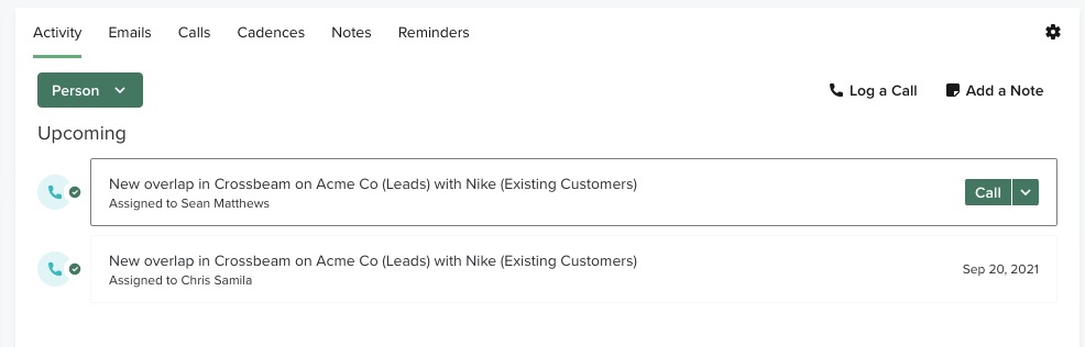 These Tasks will show up as "Crossbeam overlap" with details on the partner, your internal population (leads, customers, etc.), and your partners' population (leads, customers, etc.).Â