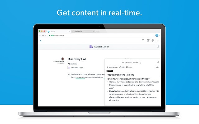 Objections derail opportunities in a hurry. Dooly pushes real-time answers to your reps so they’re always comfortable handling their buyers’ questions.