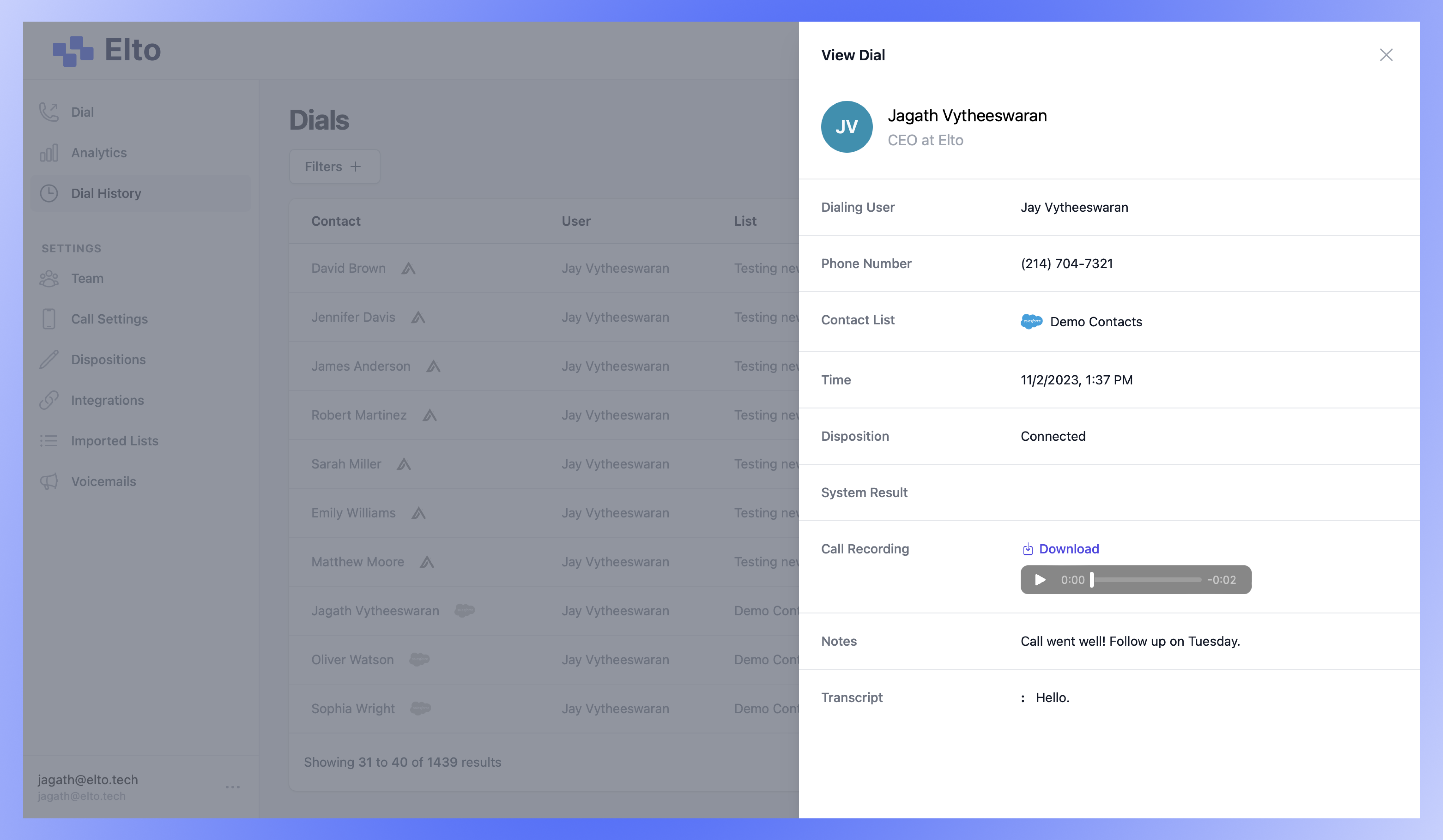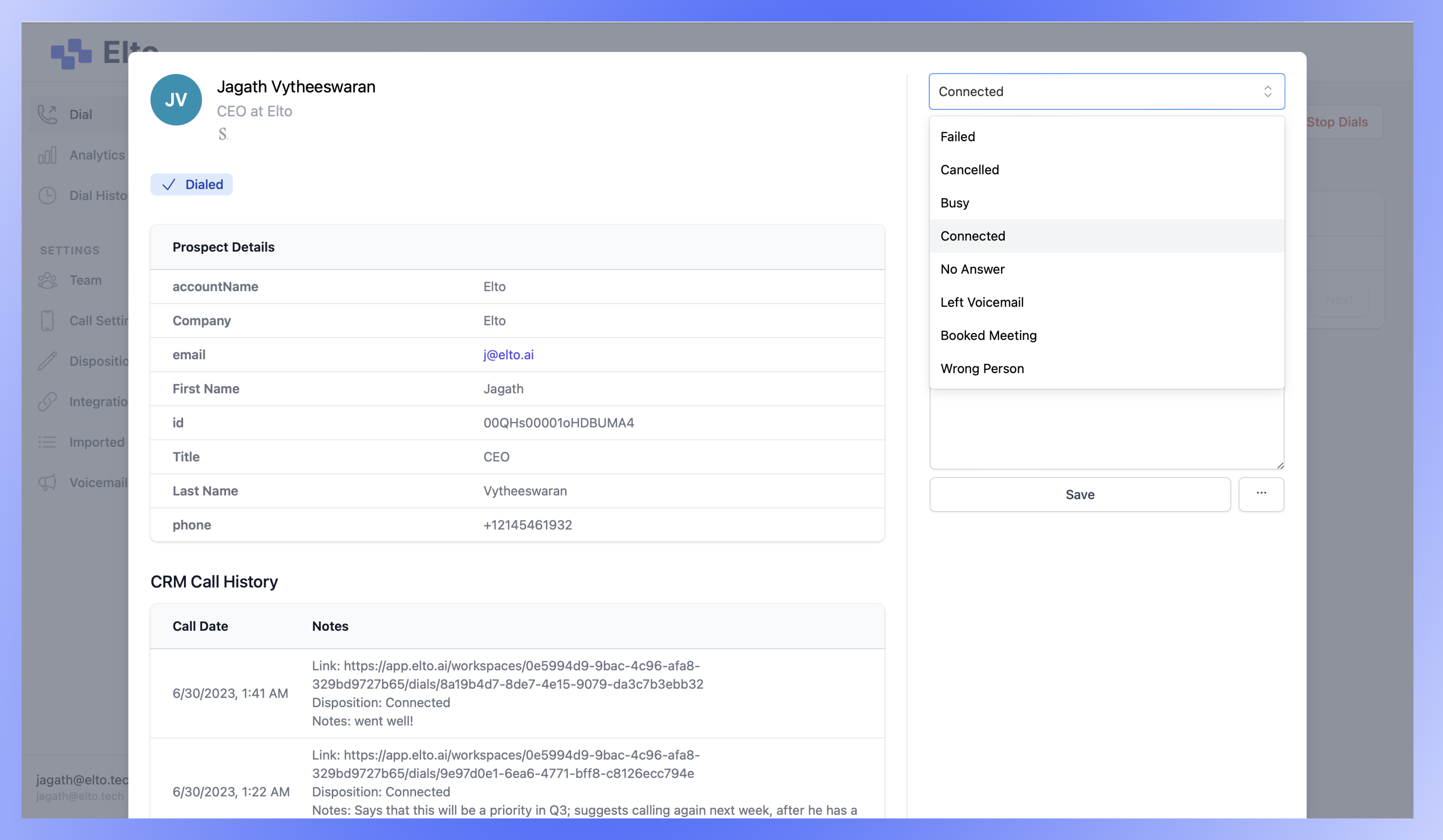 Elto uses AI to get your reps into 5-7x more conversations. Elto's AI leaves voicemails, handles dial trees, and drops your reps into live conversations immediately, so they can spend their time selling, not waiting.