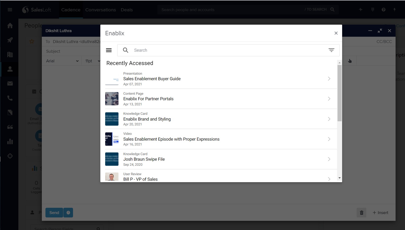 Reps can browse the content library similar to how they browse it in the web application by content types, solutions, industries, personas, etc. Or they can use search to get access to the right content.Â
