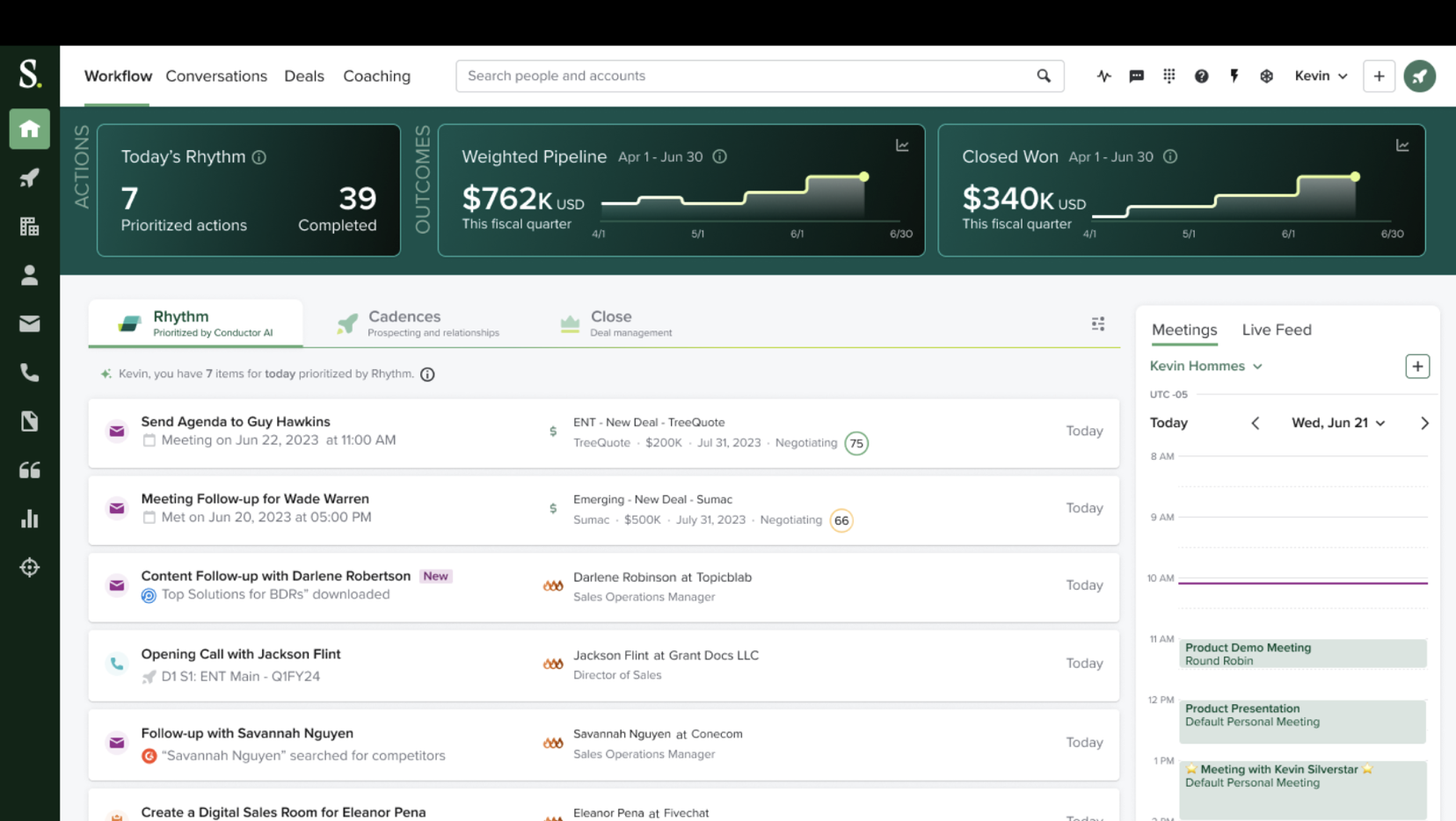 Create Salesloft Plays that automatically prompt reps to re-engage their buyer when a Highspot Pitch is viewed, downloaded, or shared. Salesloft Plays are prioritized by Conductor AI in the Rhythm focus zone so that reps stay focused on the buyers and deals that are most likely to help them hit their number.