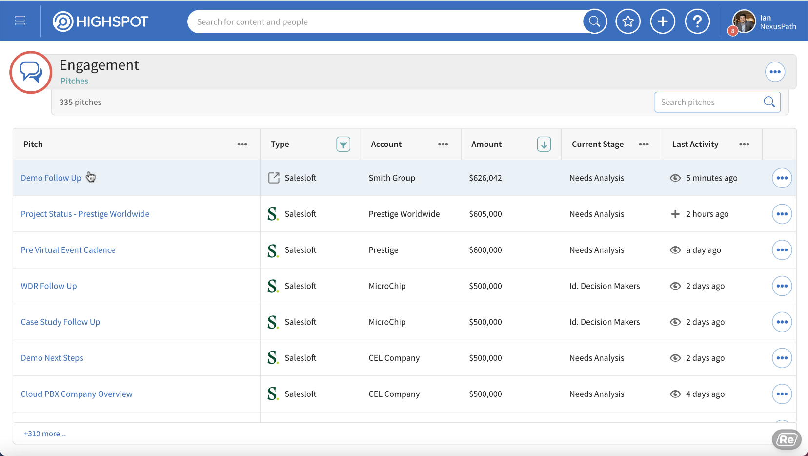 Engagement signals from Highspot create notifications in users’ Salesloft Live Feed, making it easy to stay on top of buyer activity without switching between apps.