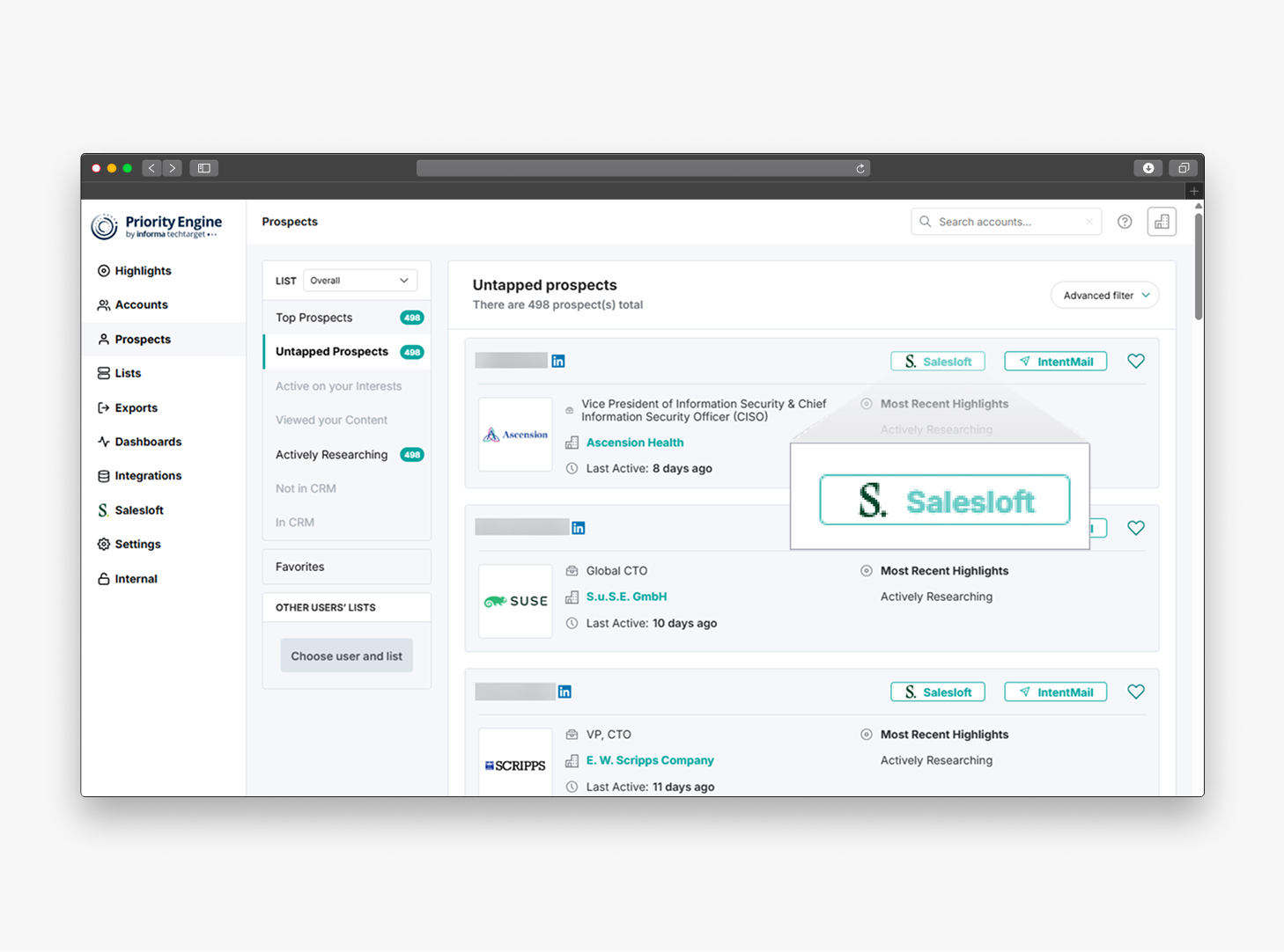 - Streamline workflows between Priority Engine, Informa TechTarget’s purchase intent data platform, and Salesloft to maximize sales efficiency