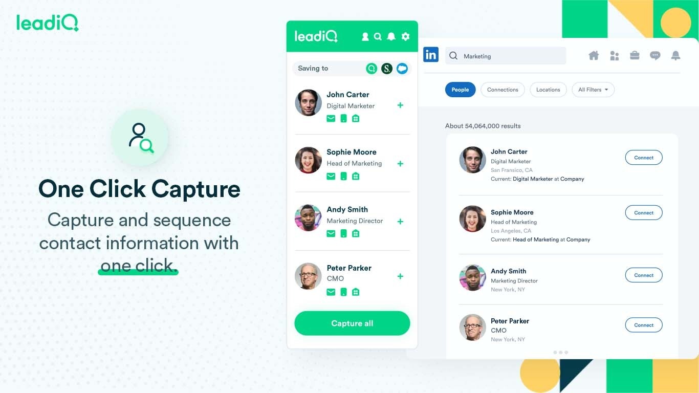 LeadIQ makes sales teams more efficient at outbound prospecting by capturing and sending contact information with one click directly to your Salesloft cadences and CRM.Â