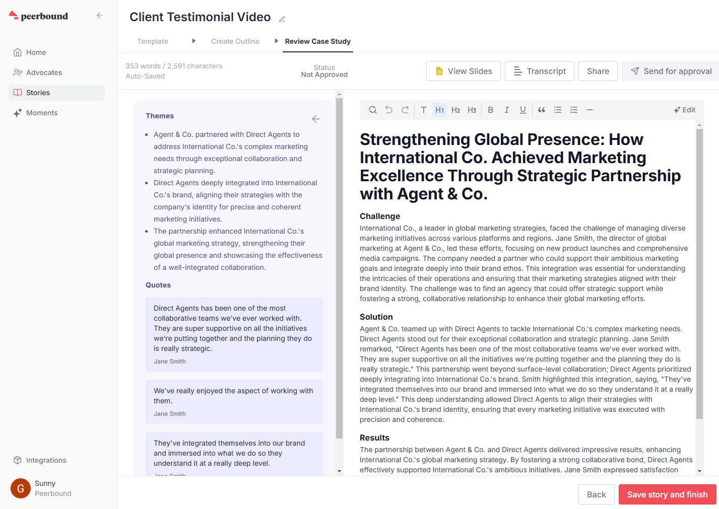 - Find: Find A+ customer content from call recordings, G2 and TrustRadius reviews, webinars, conference talks, and existing customer stories.