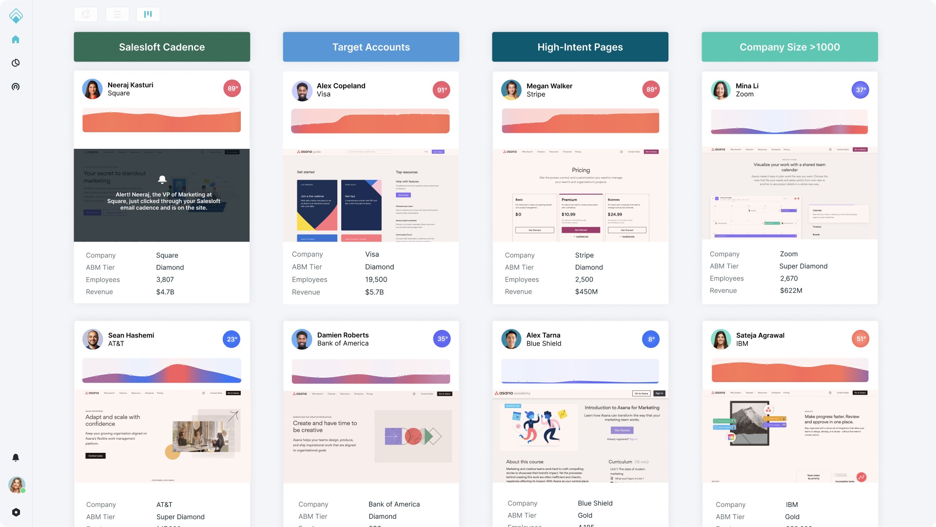 Automatically segment your website visitors by categories, like “Salesloft Cadence,” so reps know exactly how to identify their most valuable buyers.