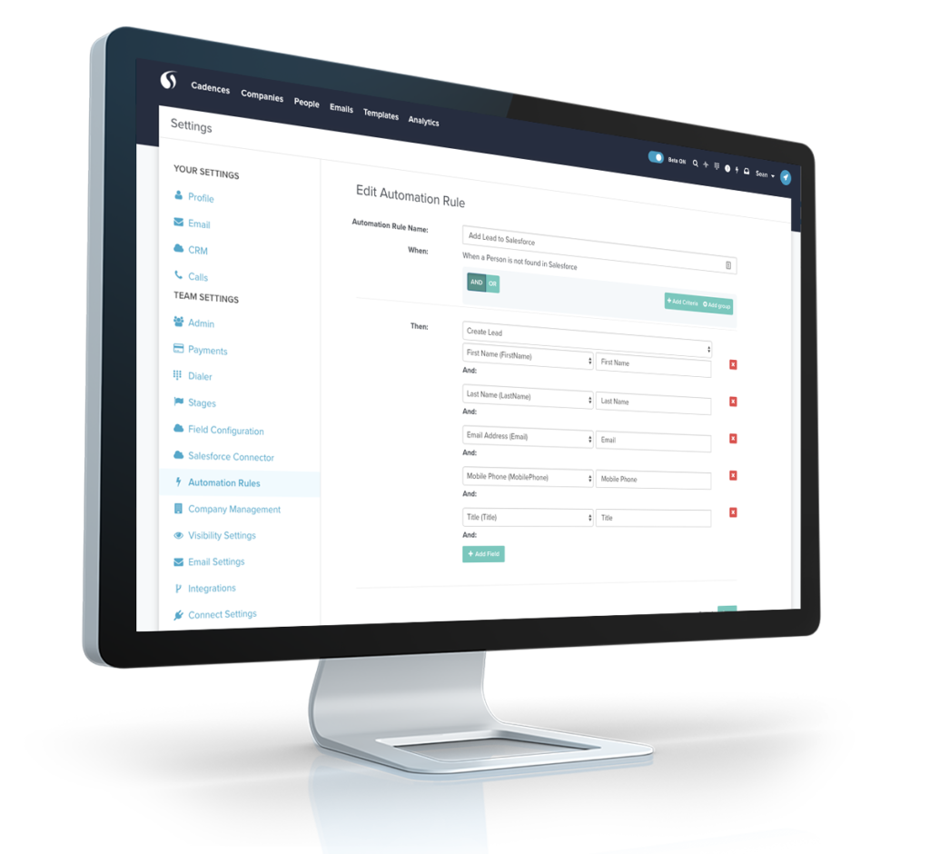 Let Salesloft do the heavy lifting in Salesforce. Easily apply automation rules to execute manual, repetitive processes. Create rules including multiple actions built on a single set of criteria. Administrators can maintain full control over the flow of data in and out of the system and standard criteria can be set across the sales team, preventing duplicate communications at the account-based level.
