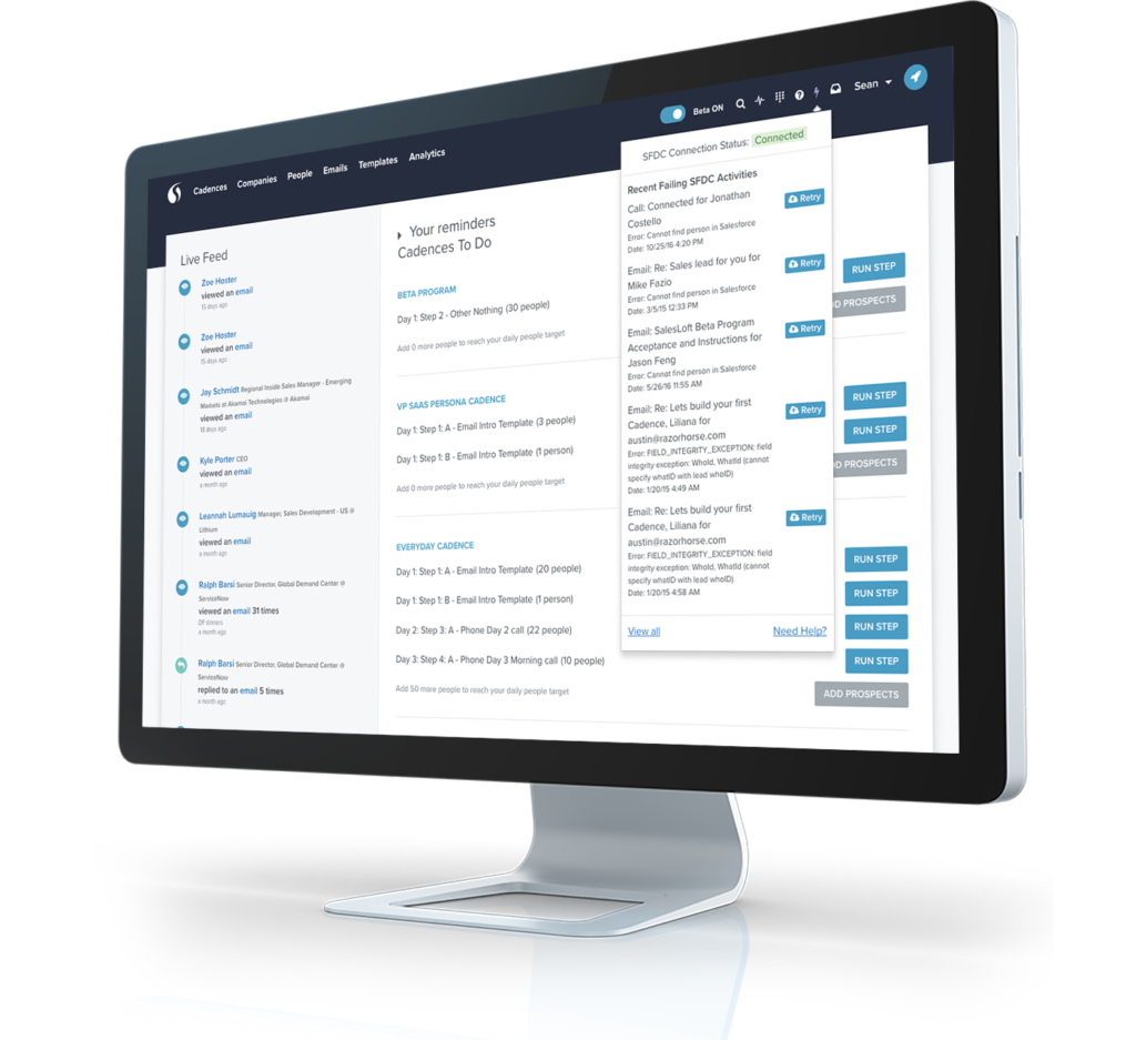 Optimize workflow using the Salesloft Connect Chrome extension in your CRM. Import records and run Cadence workflows directly within Salesforce.Â