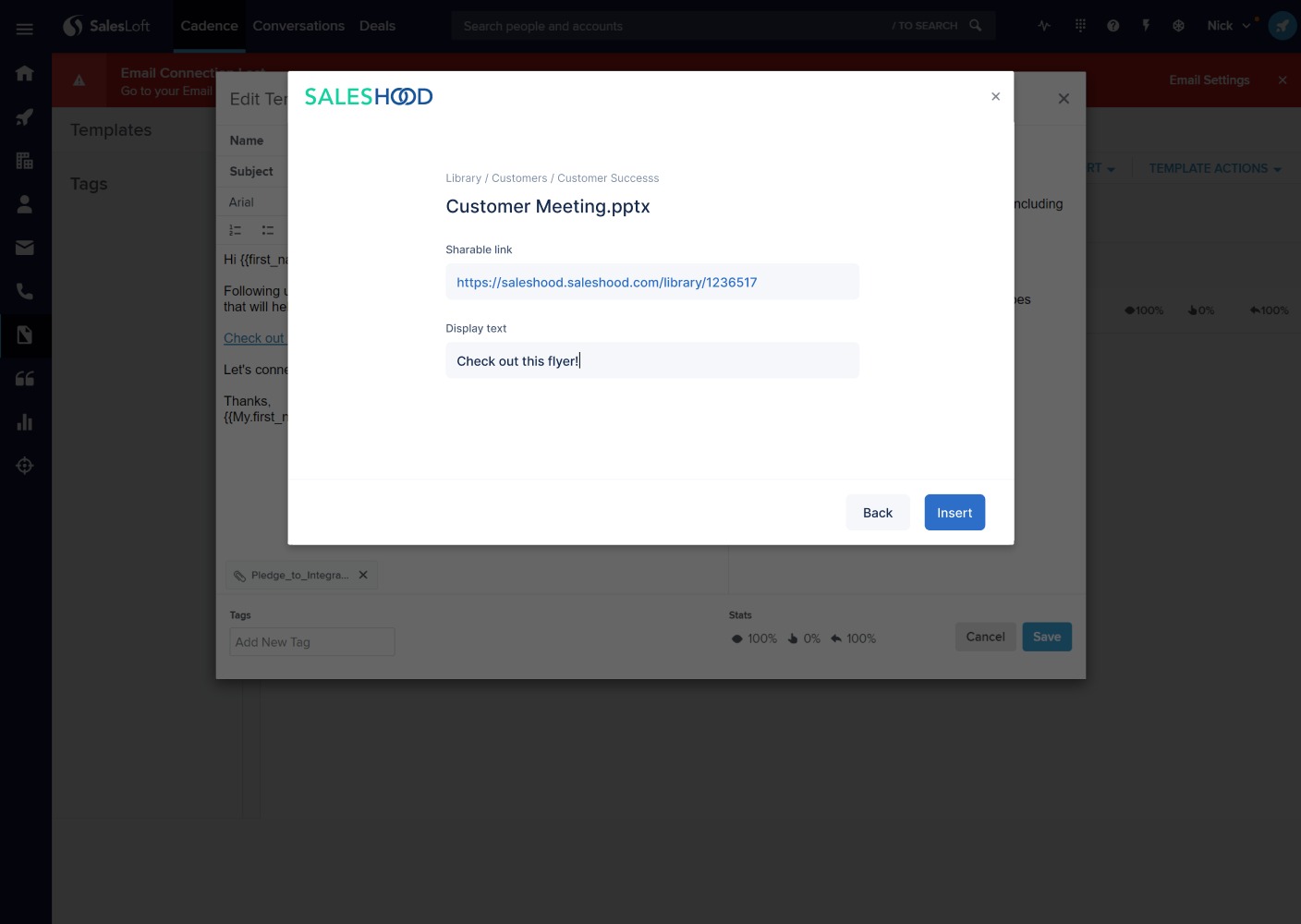 - SHARE CONTENT with buyers by creating and inserting sharable links in your email cadences.