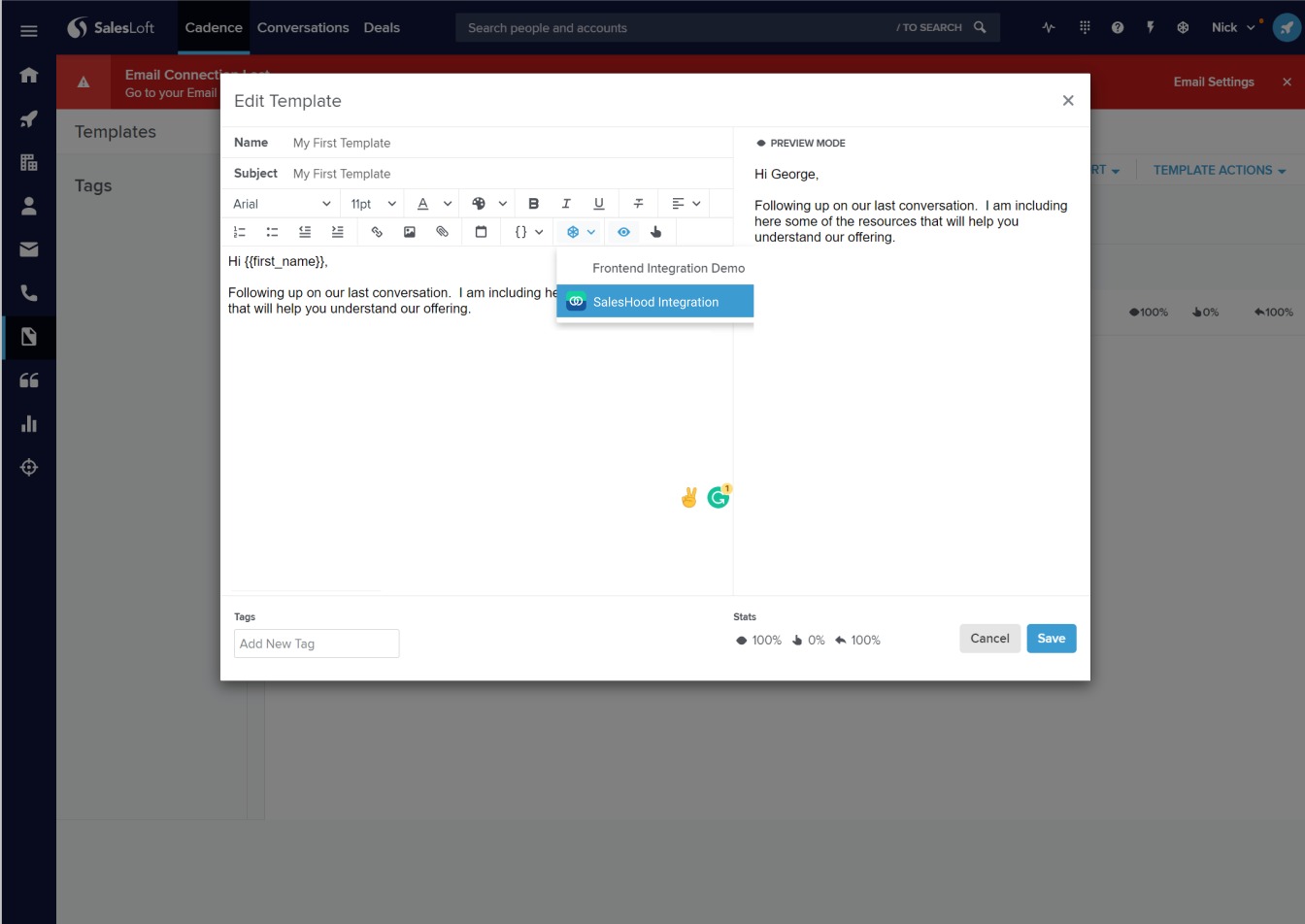 SalesHood's integration allows you to: