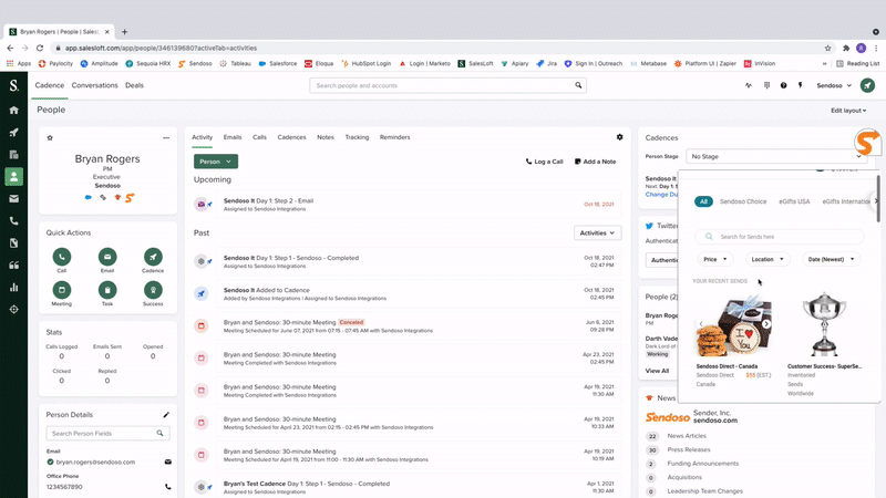 - Add Sendoso as a step within your Cadence to ensure timely follow-up.