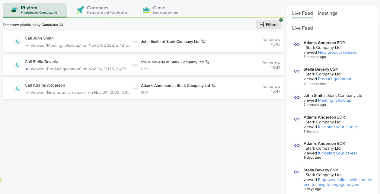 With Showpad and Salesloft Rhythm, your marketing and revenue team come together: based on signals from Showpad on how your buyer interacts with viewed content, you can set up your workflows and cadences so your revenue teams can add value during every interaction and close deals faster. We make it easy for your sellers to have both engaging conversations and provide that tailored follow-up that moves the needle.