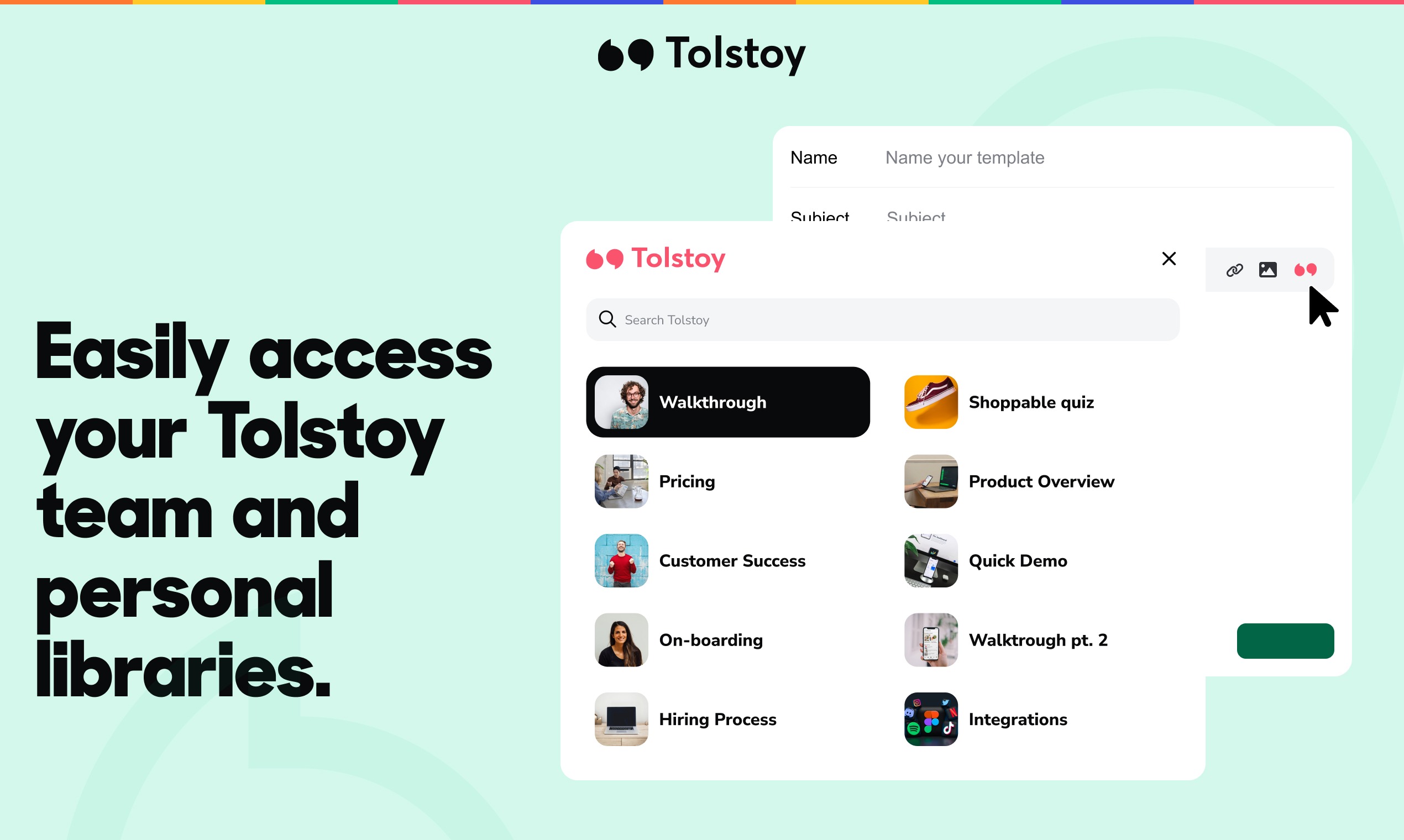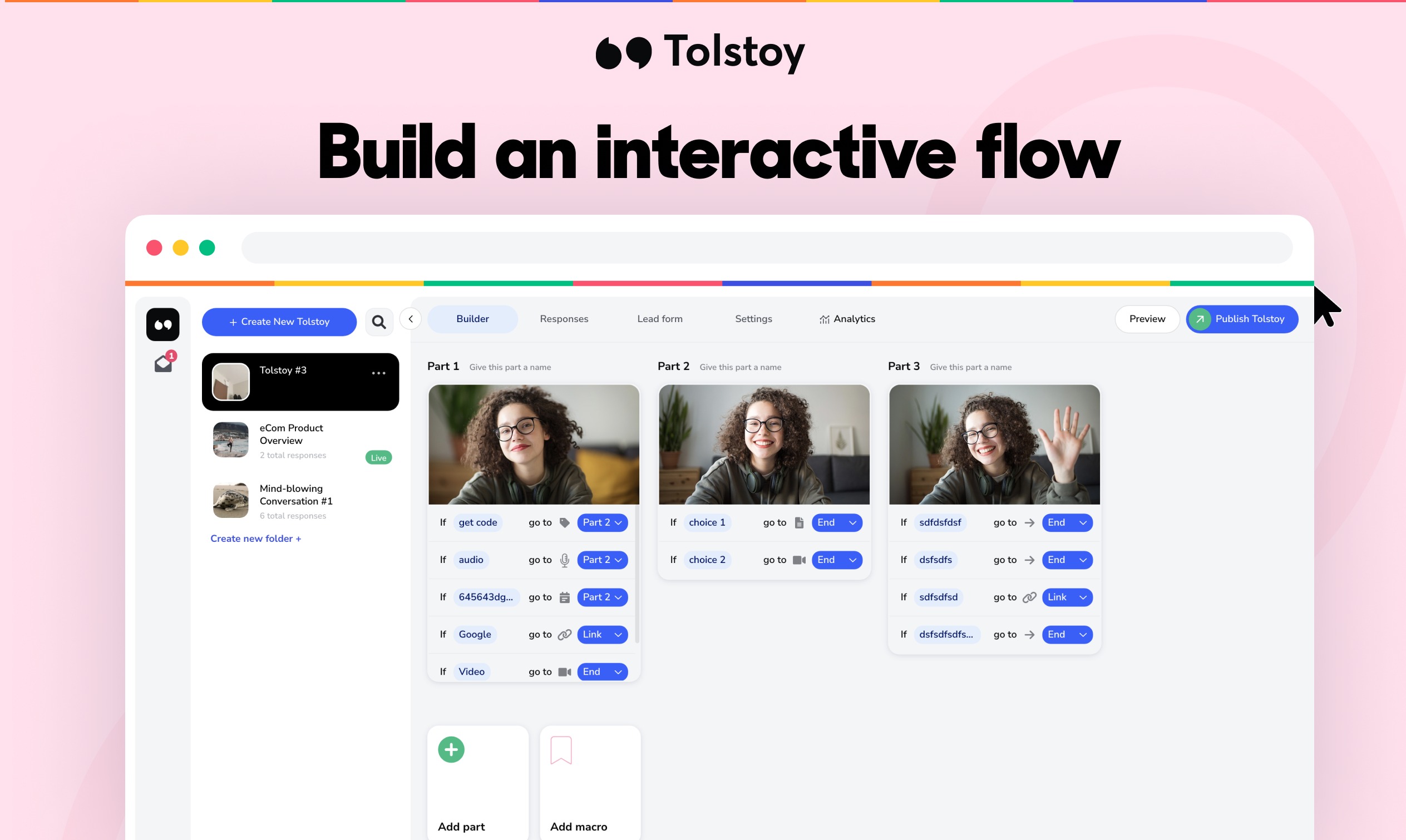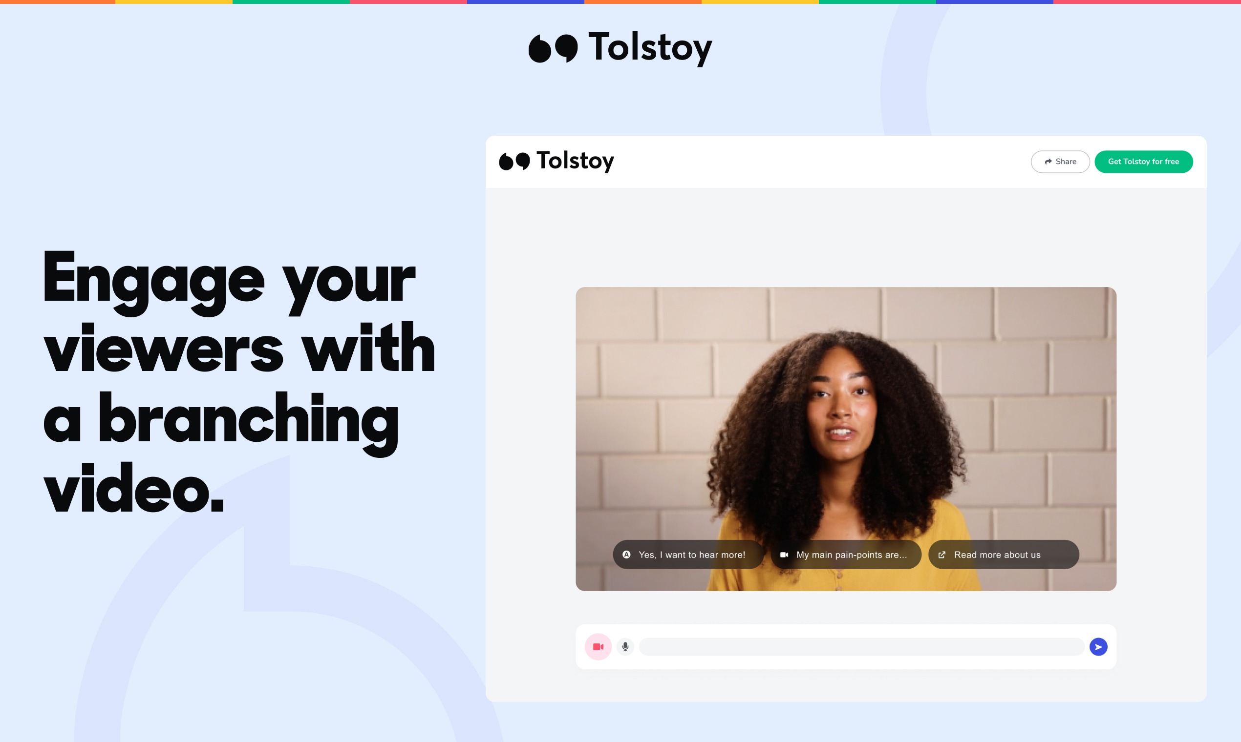 Triple your response rates by adding interactive videos to your Salesloft emails. With Tolstoy, you can easily build branching videos and place Call To Actions in your video, boosting engagement rates and increasing the amount of meetings booked.
