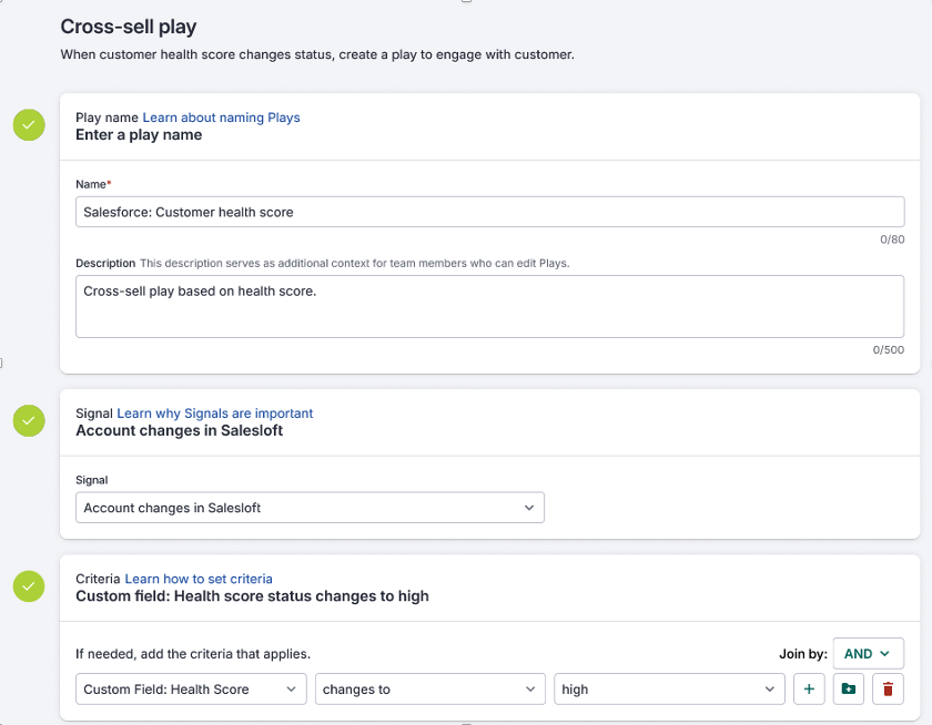 - Create a play using an account, person, or opportunity updates as the signal.