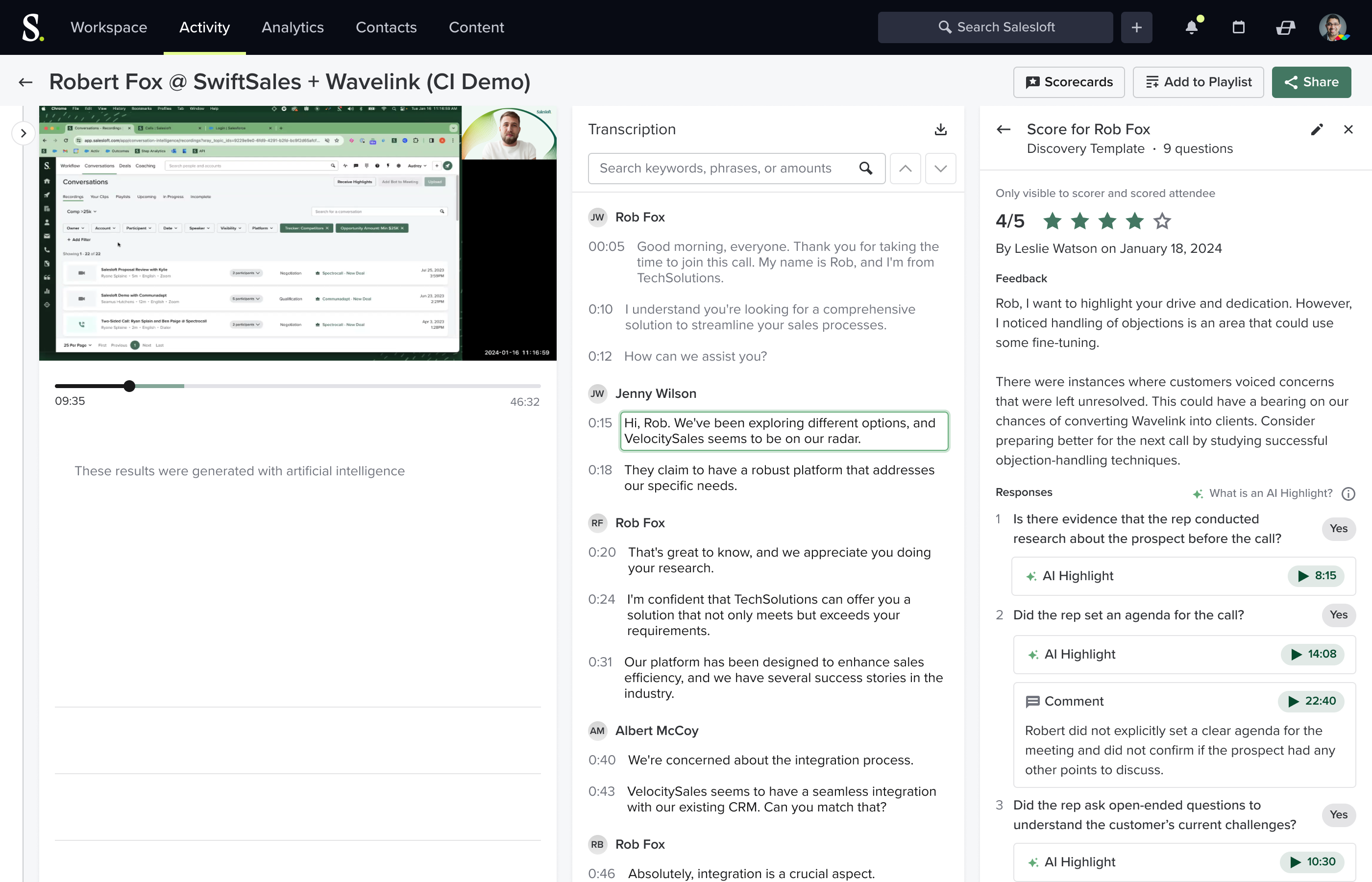 - Coach consistently. Provide relevant, targeted feedback to every member of the sales team with AI-assisted conversation scorecards to make coaching more accessible, consistent, and efficient.
