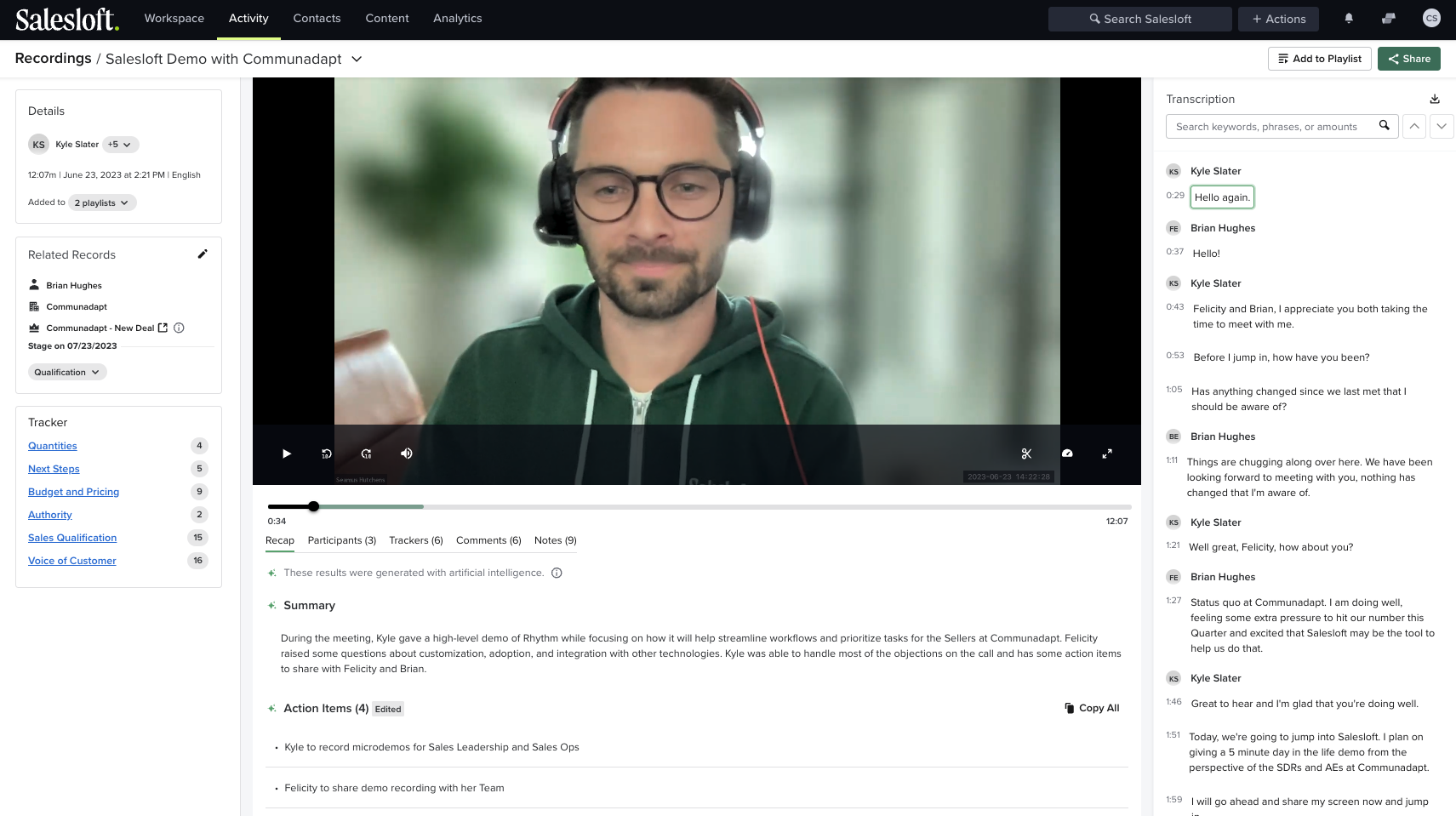 - Deep customer listening. AI transcribes, analyzes, and summarizes every recorded Zoom conversation so the full selling team can maintain context on their deals. Keyword tracking surfaces trends across all buyer conversations so you can understand what messages are resonating - and what threats are emerging.Â